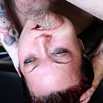 This chubby emo pig Devon O'Rielly is in for some extreme face fucking. She told us that she has rough sex at home so this should be a piece of cake. After some small talk, we had her on her knees and began violating her throat. She kept her mouth open while taking all the harsh face fucking Bootleg had to offer her. He continue to shove his cock far down her throat while she had her head hanging off the edge of the sofa, grabbing the back of her head and thrust his cock deeper. Then she got bent over and a cock shoved right up her ass. After her holes were used and abused, she sat down and a load of cum was dumped on her head.